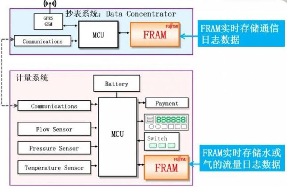圖1:富士通FRAM在智能水、氣表計中的應用