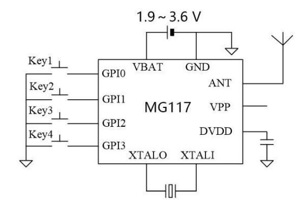 藍(lán)牙芯片MG127是具有低功耗、低成本的BLE 收發(fā)器,內(nèi)部集成了發(fā)射機(jī)、接收機(jī)、GFSK 調(diào)制解調(diào)器和BLE 基帶處理。電源電壓1.9~3.6,可以采用一個(gè)紐扣電池(3.0v)供電,具備3uA待機(jī)電流,20mA@0dBm持續(xù)發(fā)射,18mA持續(xù)接收等特點(diǎn)。MG127 采用DFN3x3 封裝,只需搭配低成本MCU 和少數(shù)外圍被動(dòng)器件,即可實(shí)現(xiàn)BLE 遙控、藍(lán)牙電子秤等應(yīng)用。
