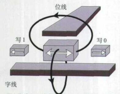 MRAM單元自由層產生的合成磁場來實現。在運行時,利用編碼排序使二維MRAM陣列中只有一條字線和一條位線通過電流(如圖1),因而只有一個MRAM單元被選中,這時可以有兩種寫人狀態: