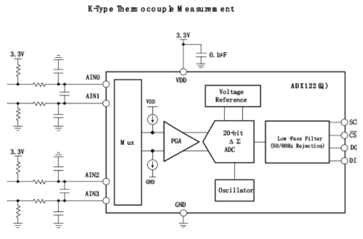 ADX122(Q)內部數(shù)字濾波器提供靈活的輸出數(shù)據(jù)速率,從10SPS到3571SPS。抗工頻干擾濾波器可以配置為50Hz或60Hz抑制模式,也可以配置為同時抑制50Hz和60Hz工頻干擾。在連續(xù)轉換模式或單次模式下工作。內部濾波器在兩種模式下都是單周期穩(wěn)定的。單次模式轉換一次后器件自動掉電;因此,空閑期間的功耗顯著降低。ADC轉換結果通過SPI™接口傳輸。同時ADX122(Q)可以工作在較寬的電源范圍,這些特性使其非常適合功率和空間受限的傳感器測量應用。