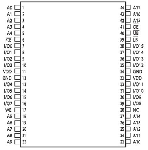 芯片使能輸入CE和輸出使能輸入OE可方便實現存儲器的擴展。低電平有效的寫使能( WE )控制著存儲器的寫和讀操作。高字節(UB)和低字節(LB )控制信號控制著對數據字節的訪問。